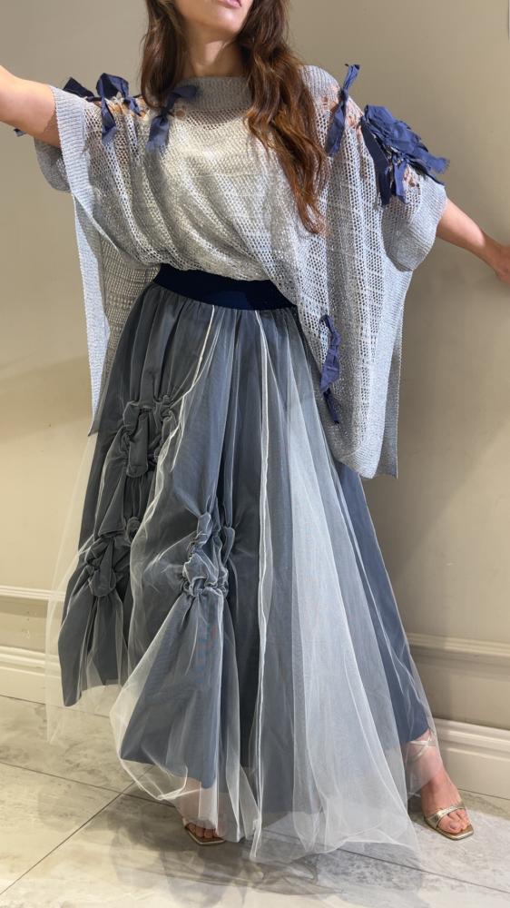 - قصة التنورة واسعة ومزينة بعُقد فنية تضيف حركة وعمق