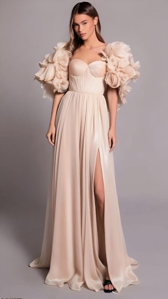 فستان سترابلس بكب ورد 3D من Tarik Ediz إطلالة ملكية ساحرة من توقيع المصمم العالمي طارق إيديز، حيث يجمع هذا الفستان بين الفخامة الفنية والقصّة العصرية...