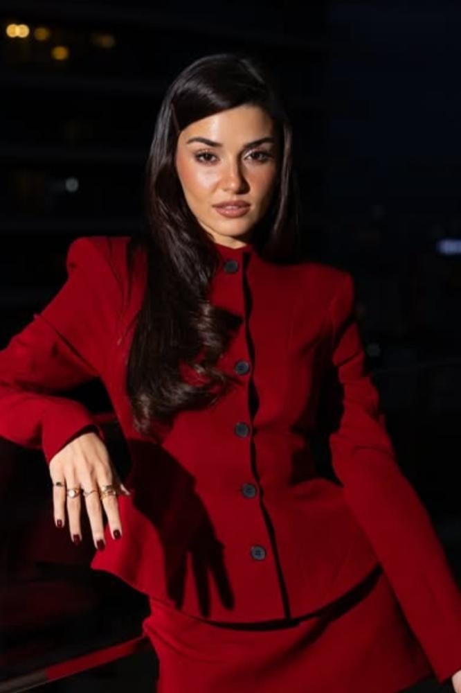 MELTEM فستان بستايل جاكيت وهدب على الأكمام
