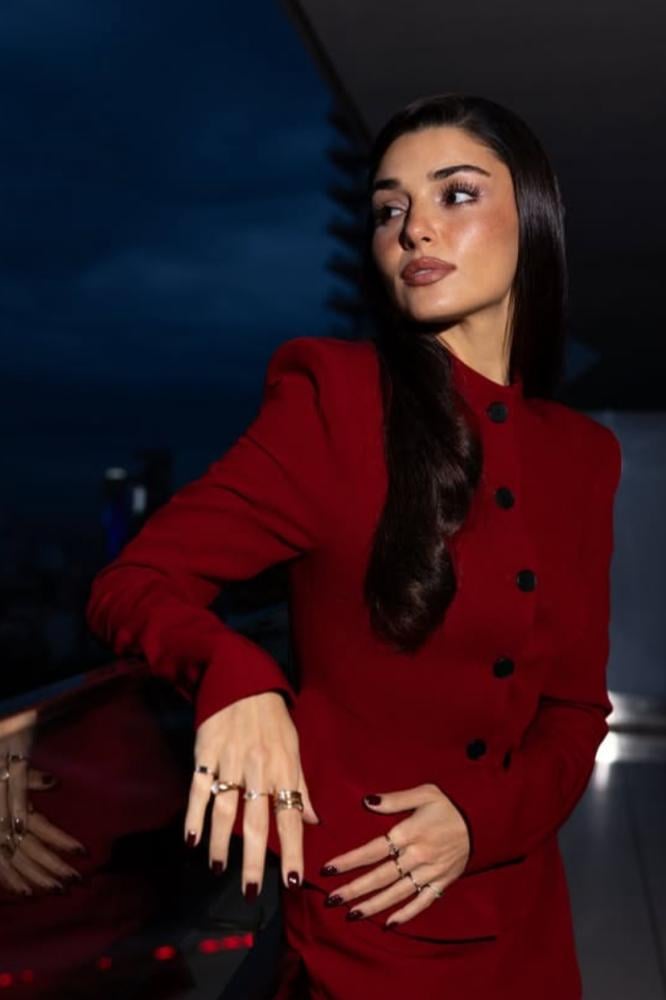 MELTEM فستان جاكيت مكسي بدرابيه على الصدر لونين