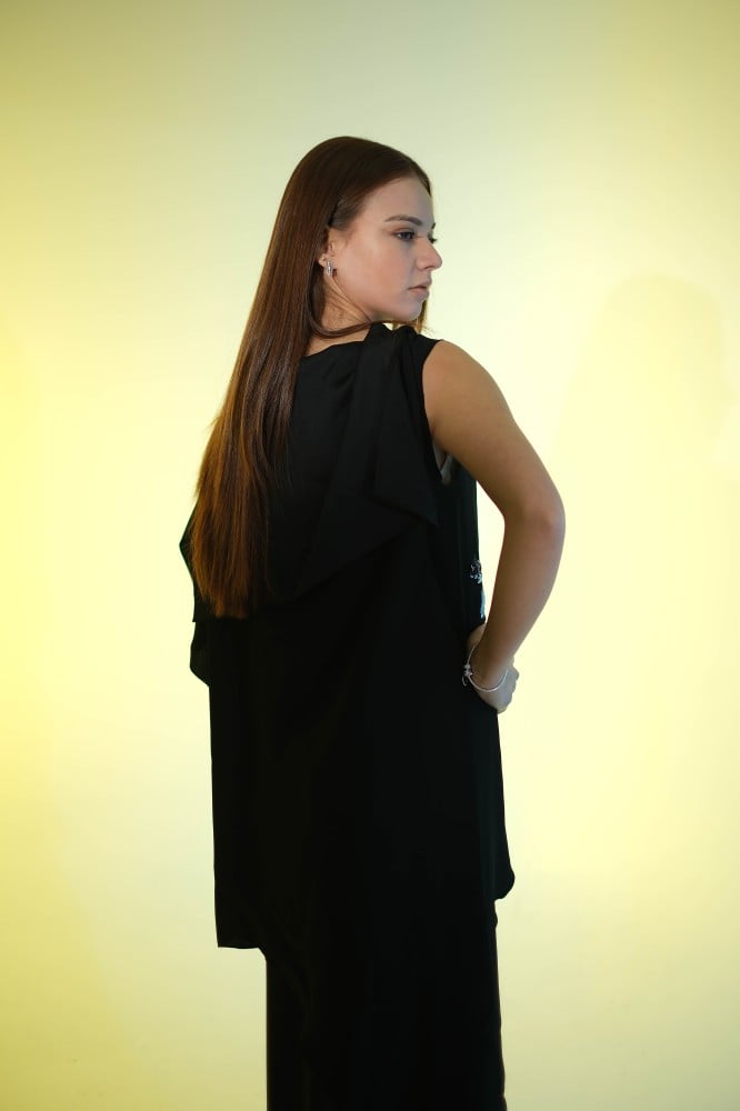 جربِ تايور سهرة أسود C DAM لأن تصميمة من بنطلون بثنيات طولية وتوب متدلي سوف تجذبين الأنظار في كل مناسبة.. اختاريه الآن وكوني الأجمل دائمًا!.