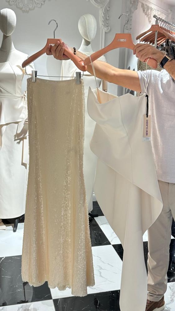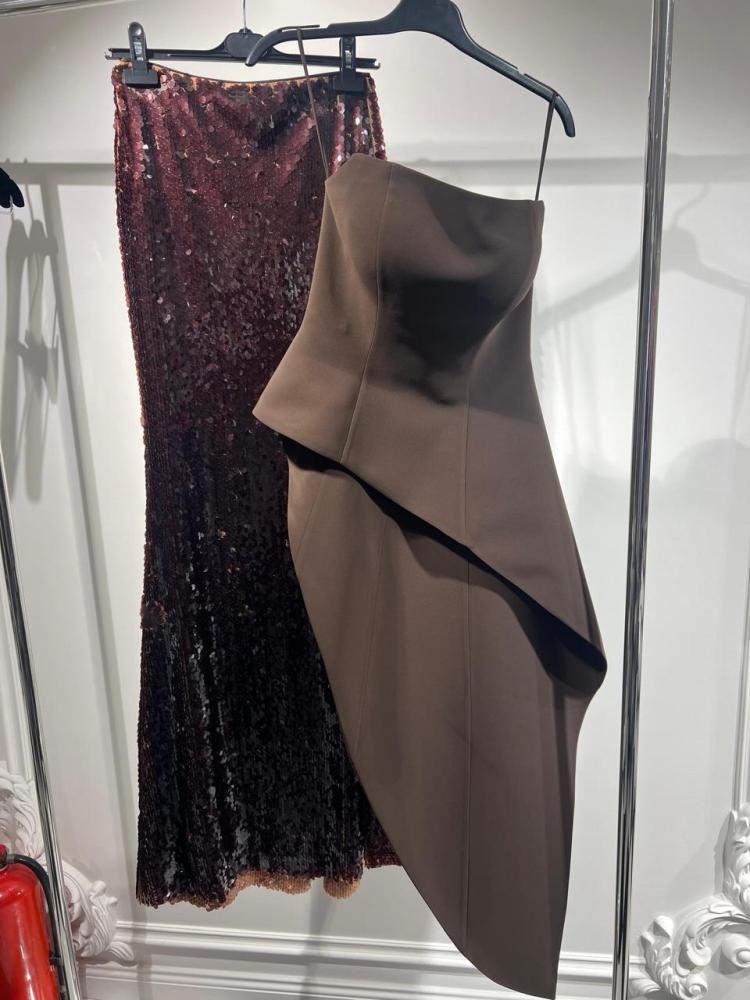 CERCIS اليقنت تنورة – طقم بلوزة وتنورة بلمسة ملكيةإطلالة تجمع بين الأناقة والجرأة، من خلال طقم فاخر يتكون من بلوزة كريب ناعمة وتنورة ترتر لامعة، مصمم ...