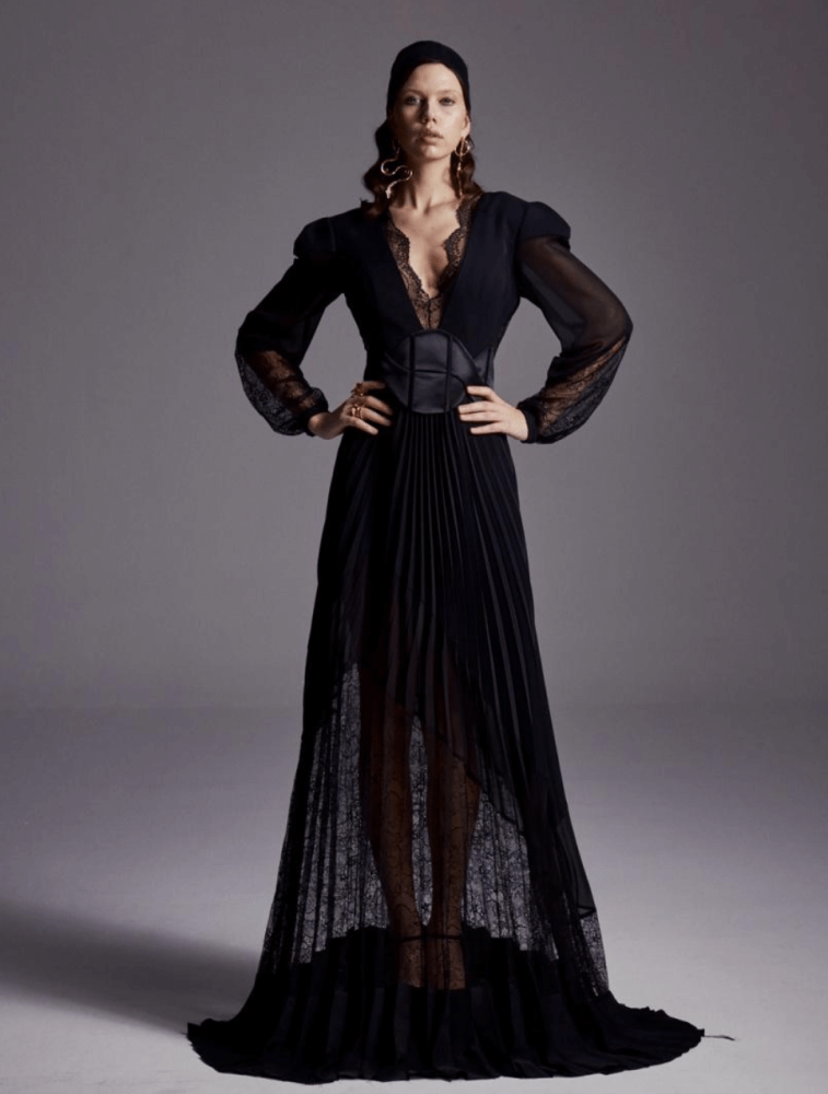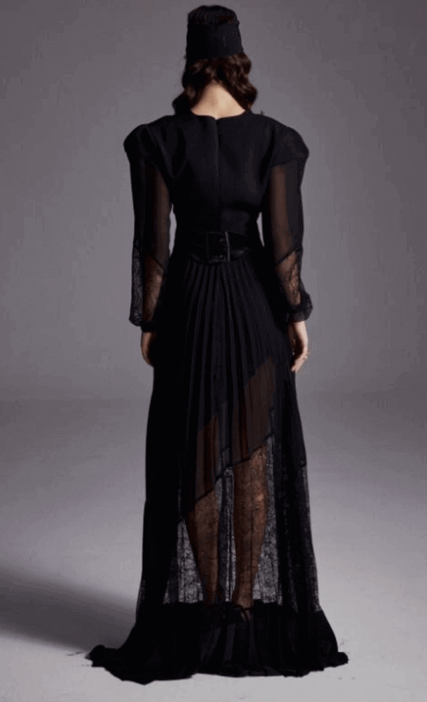 ONGUN فستان سهرة بهدب وتطريز أسود