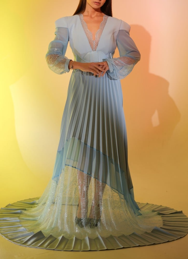 جلابية مطرزة بنقش تقليدي وتول "لونين"