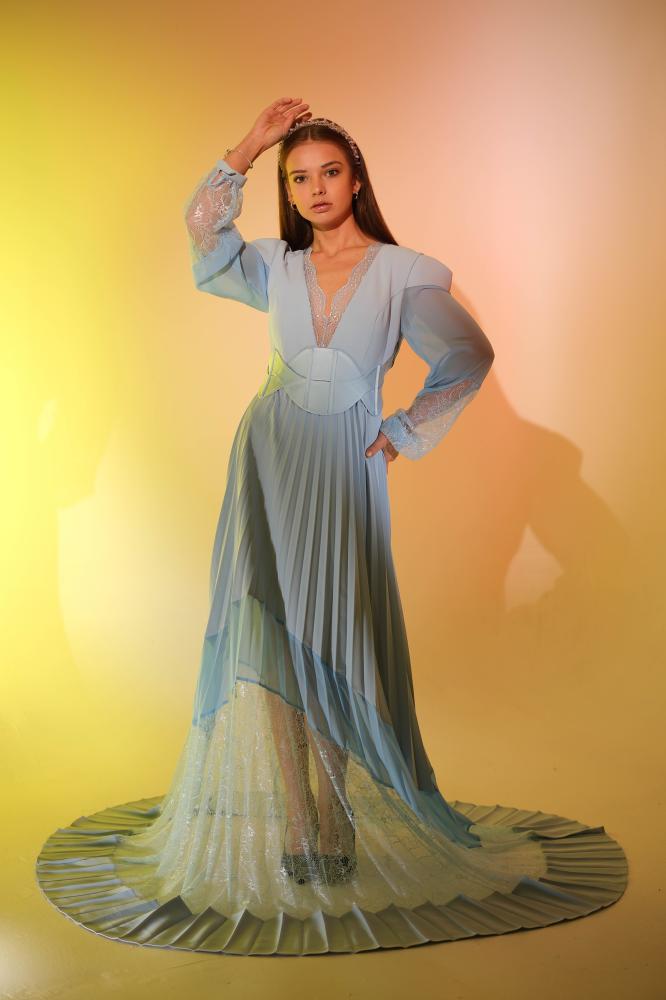 MELTEM فستان جاكيت مكسي بدرابيه على الصدر لونين
