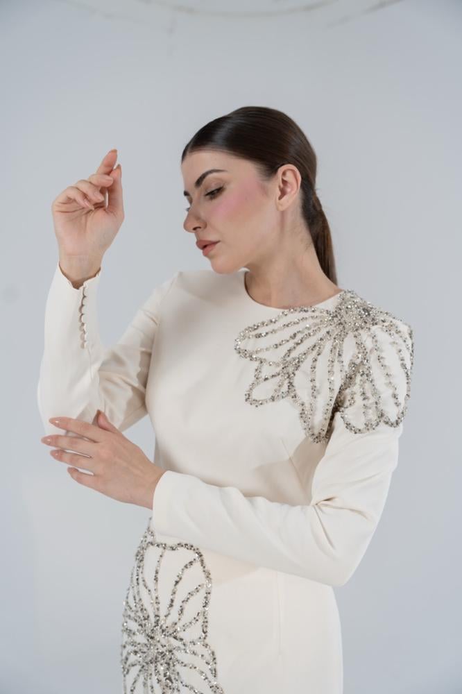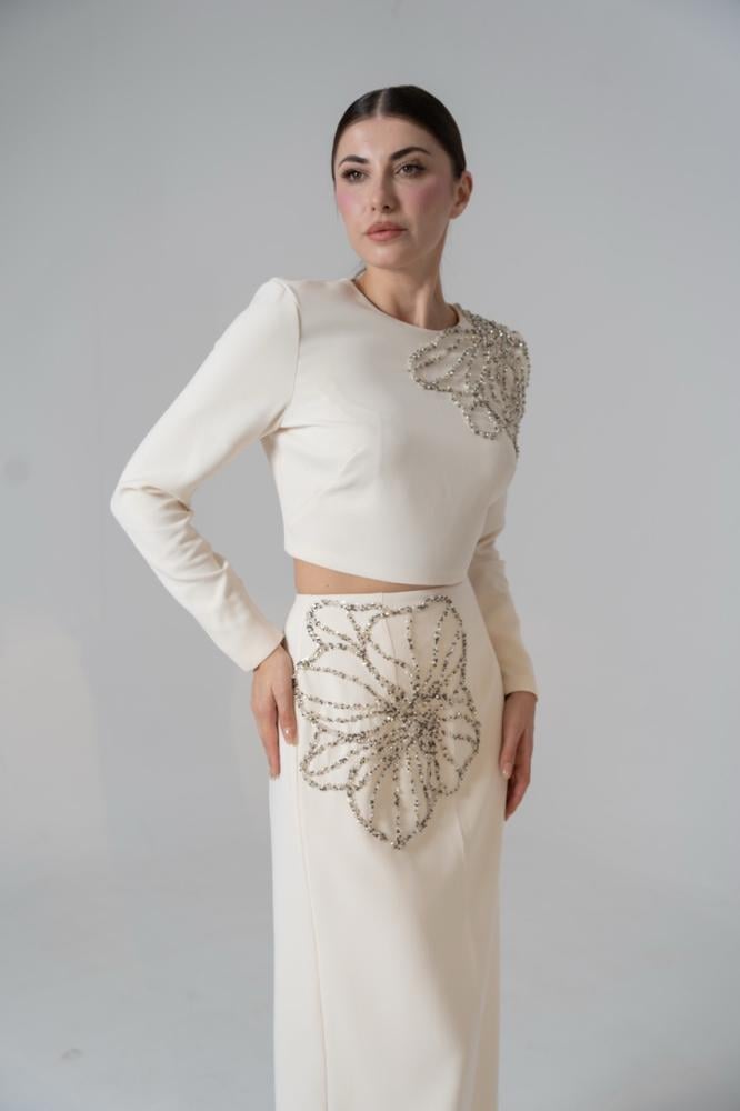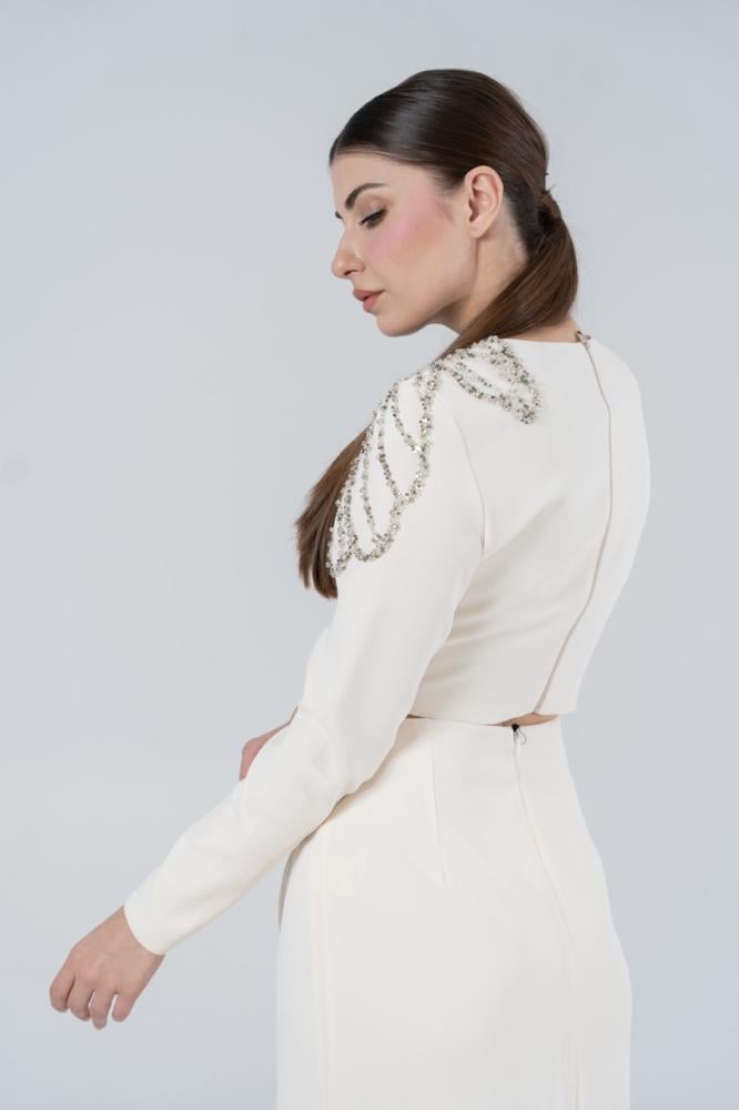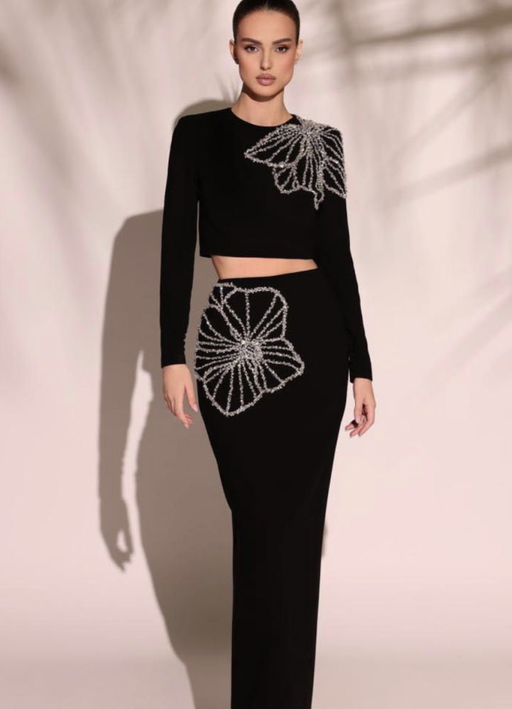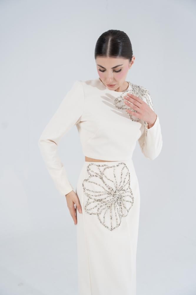 دعي إطلالتك تكتمل مع طقم كريب الفاخر من TARIK EDIZ!