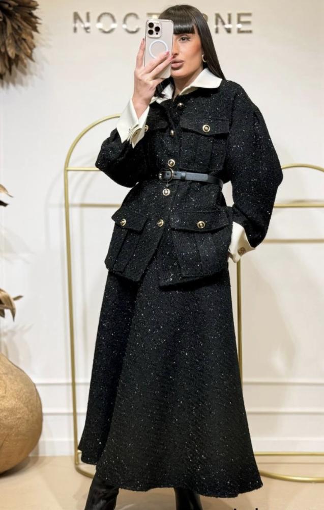 MELTEM طقم تنورة وتوب بهدب متدلي كحلي