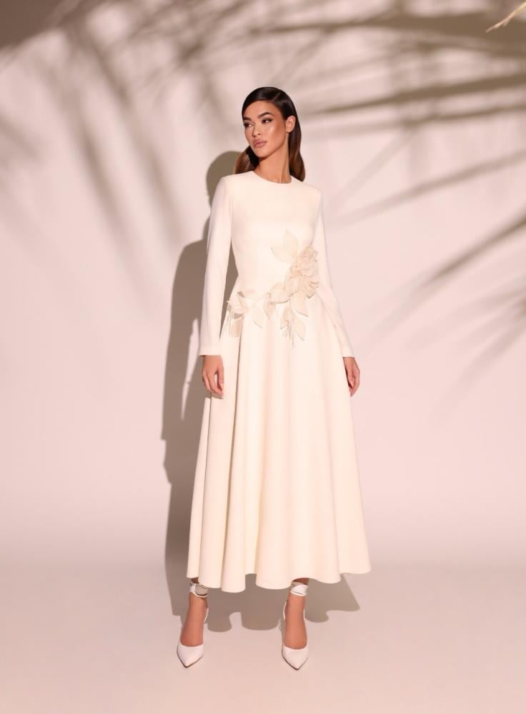 - فستان سهرة انيق تفاصيل بوردات 3D تعطيكِ إطلالة فريدة وجذابة