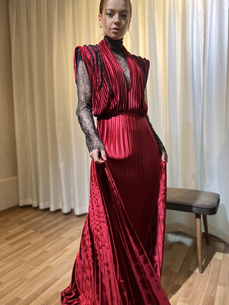 طارق ايديز فستان ماتياس بكورسيه ووشاح جانبي