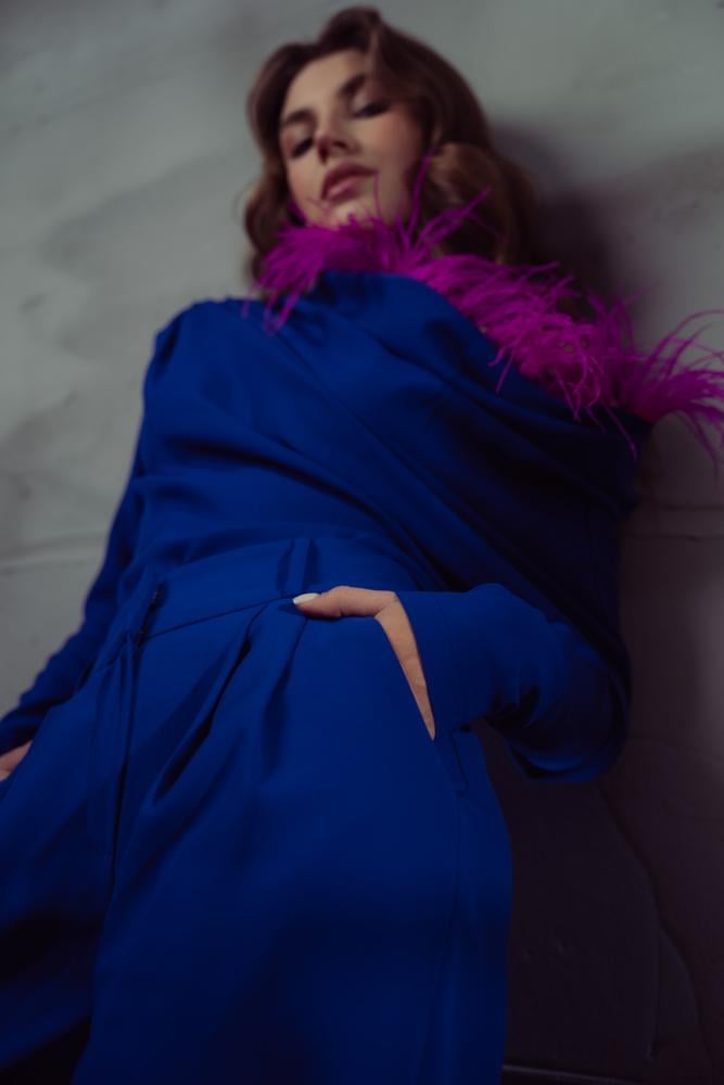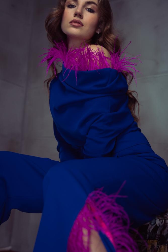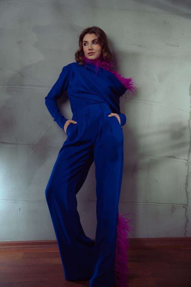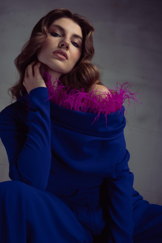 احصلي على بدلة الكريب النسائية المزينة بالريش الآن وتمتعي بإطلالة ساحرة.