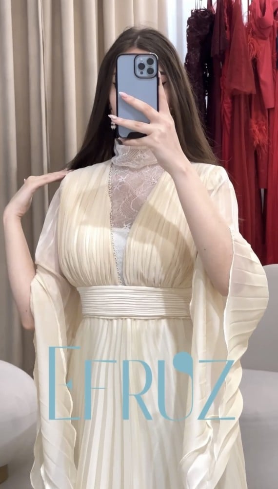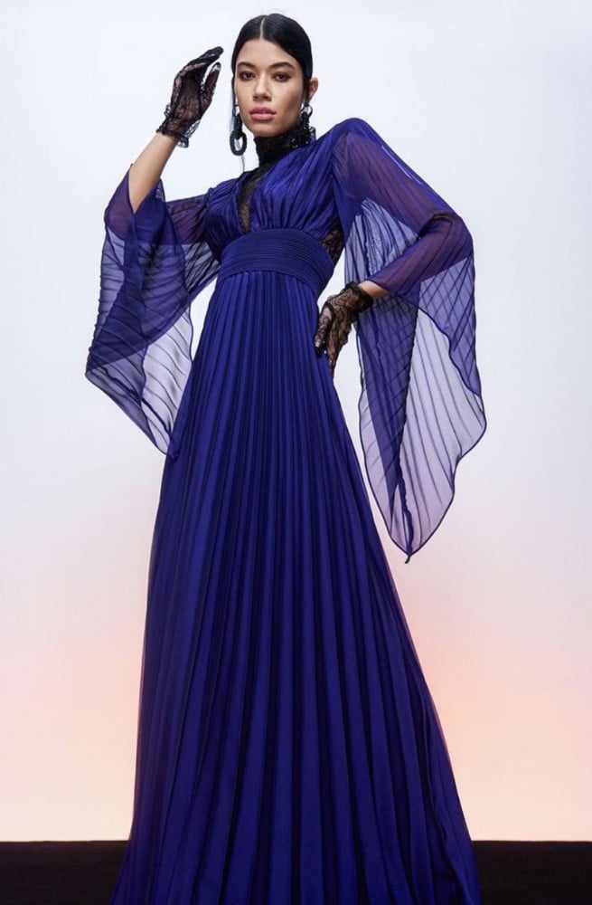 فستان شيفون بكسرات بليسية لونين