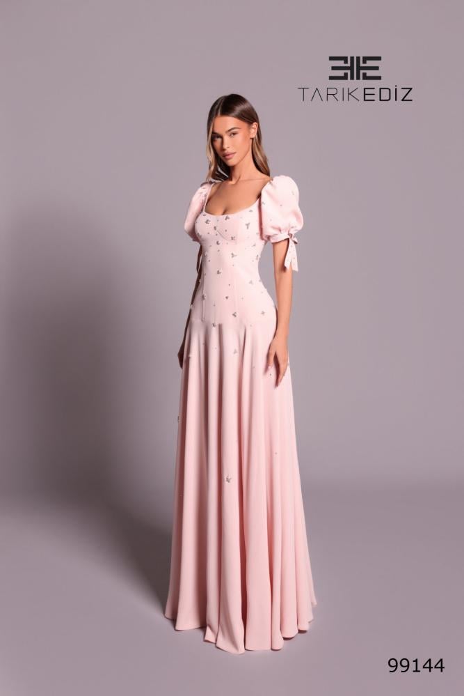 طارق ايديز فستان من الاوروقنزا الحرير بكرستال على الصدر
