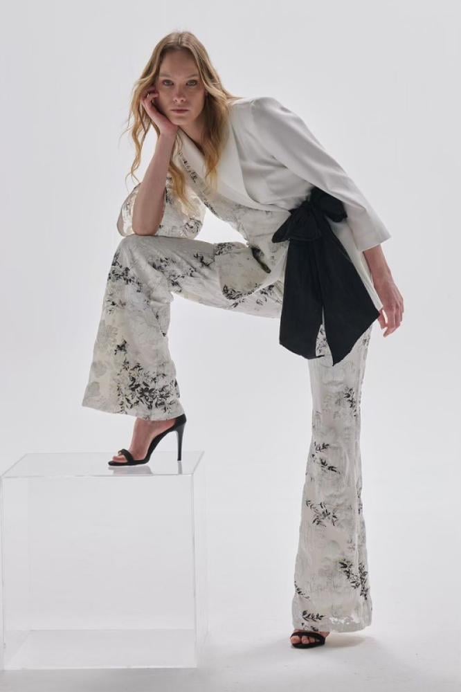 T.A.G.Gطقم حرير و لينن طبيعي بكسرات جانب الخصر