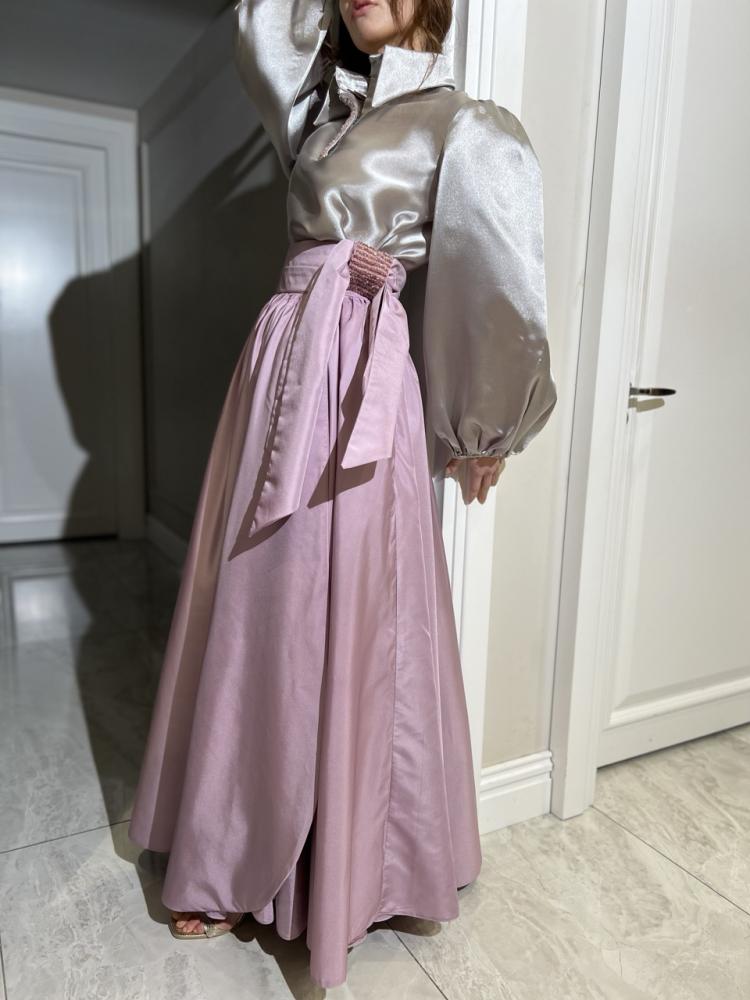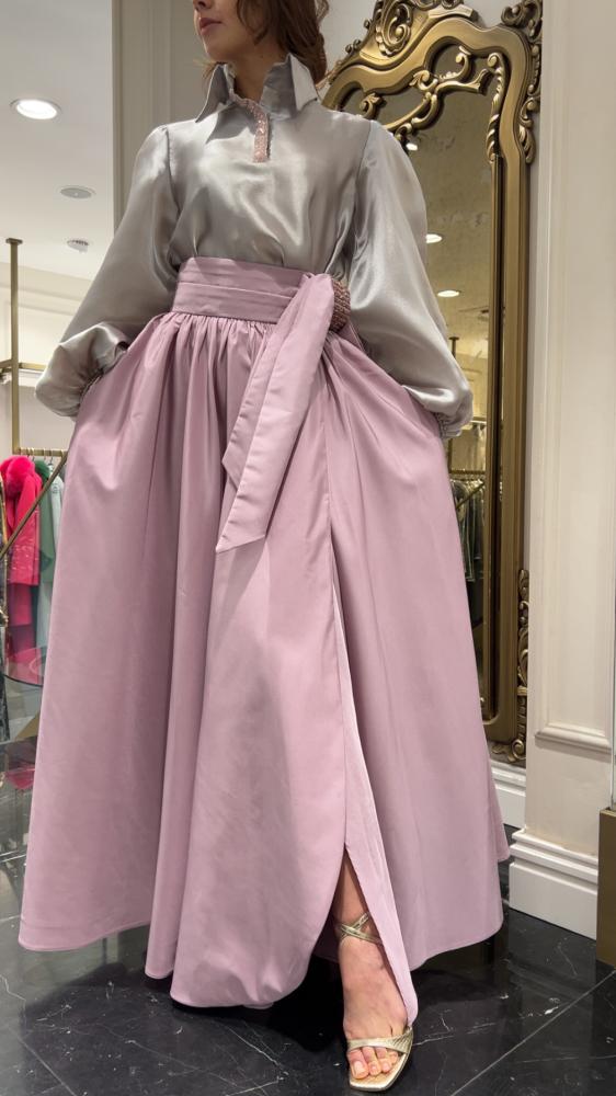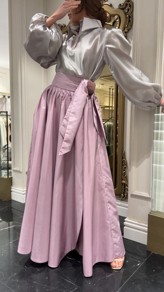 تيور بلايزر مطعم بالجلد وحزام متعاكس وتنورة ميدي