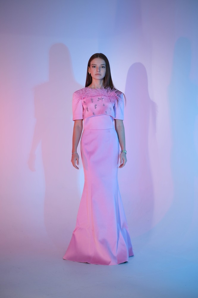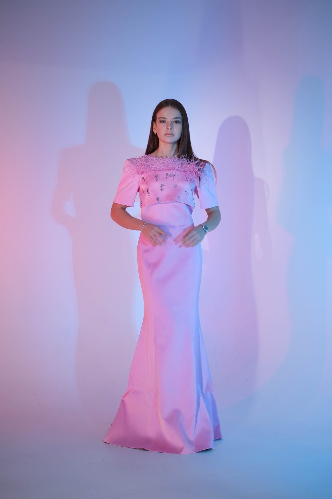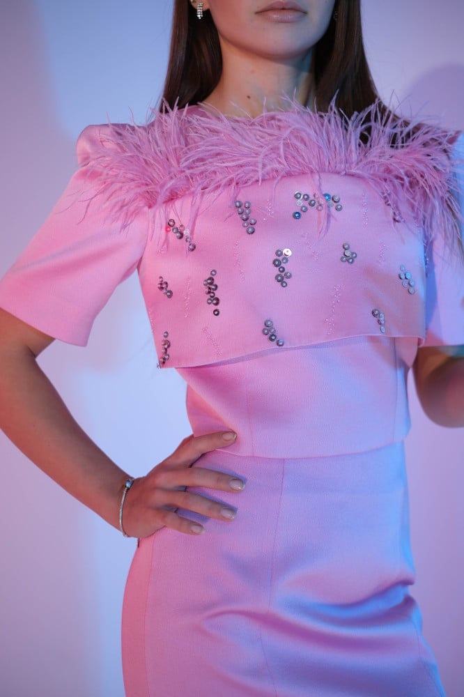 بدلة كريب مزينة بالريش