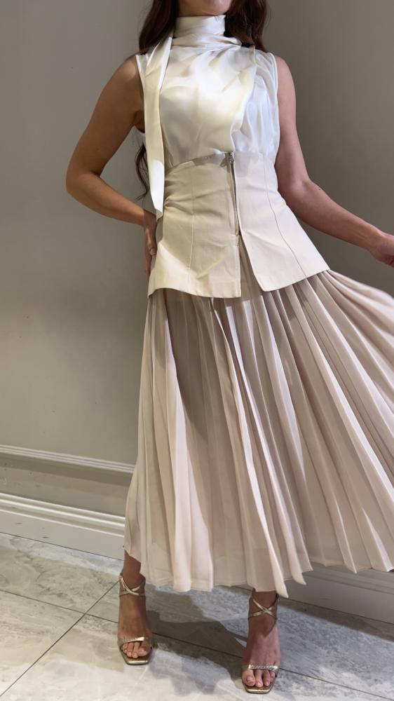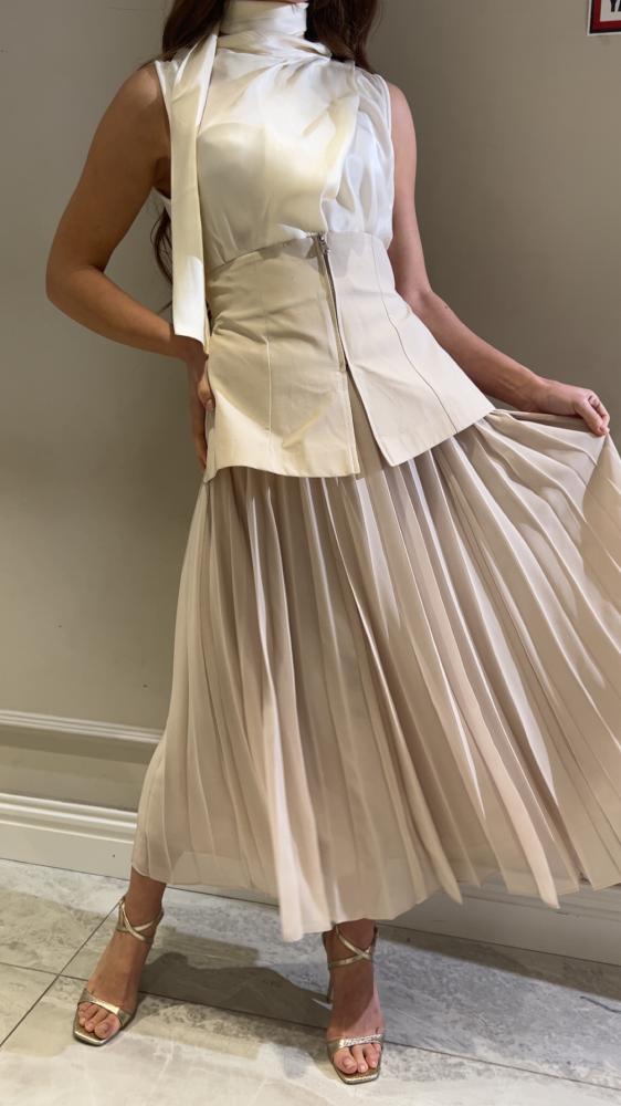 طقم بيج تنورة بليسيه و بلوزة حرير