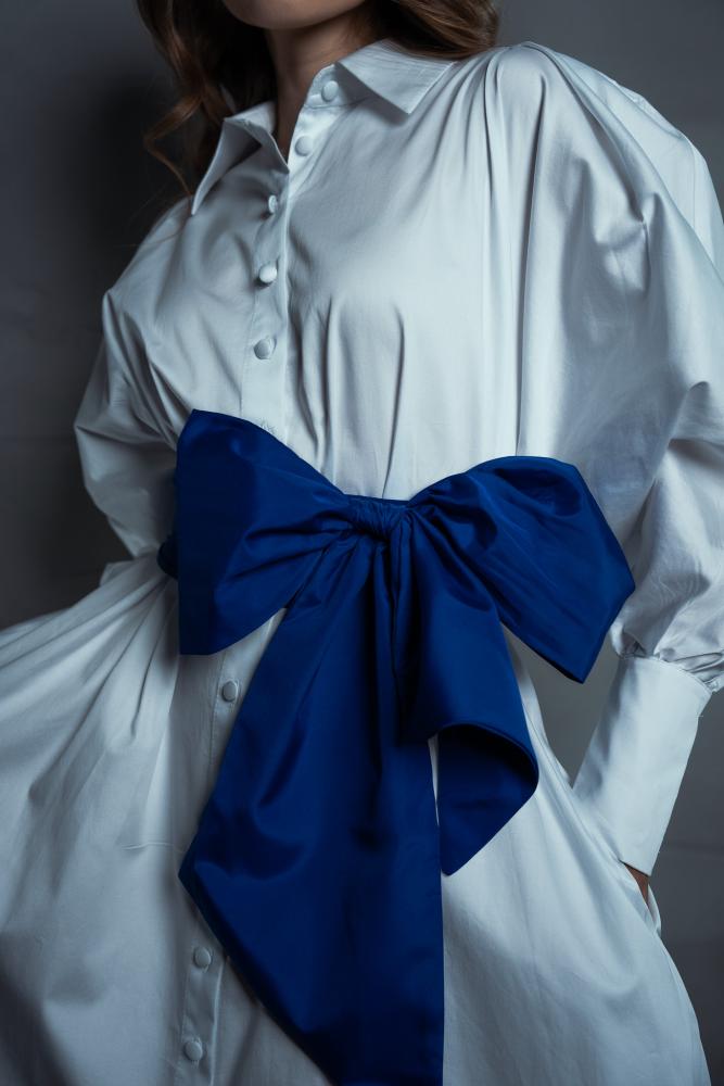 Carmen فستان أبيض كت بستراب لؤلؤ