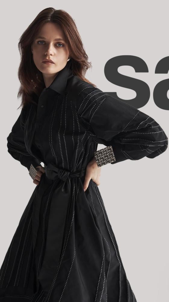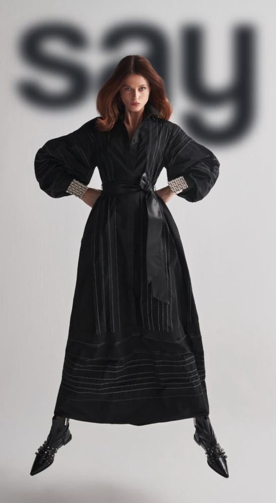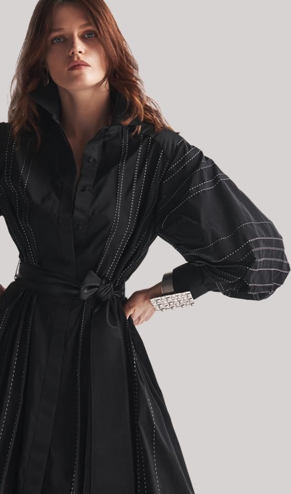 BIRGUL طقم ميدي حرير ساتان بشك يدوي "أسود"