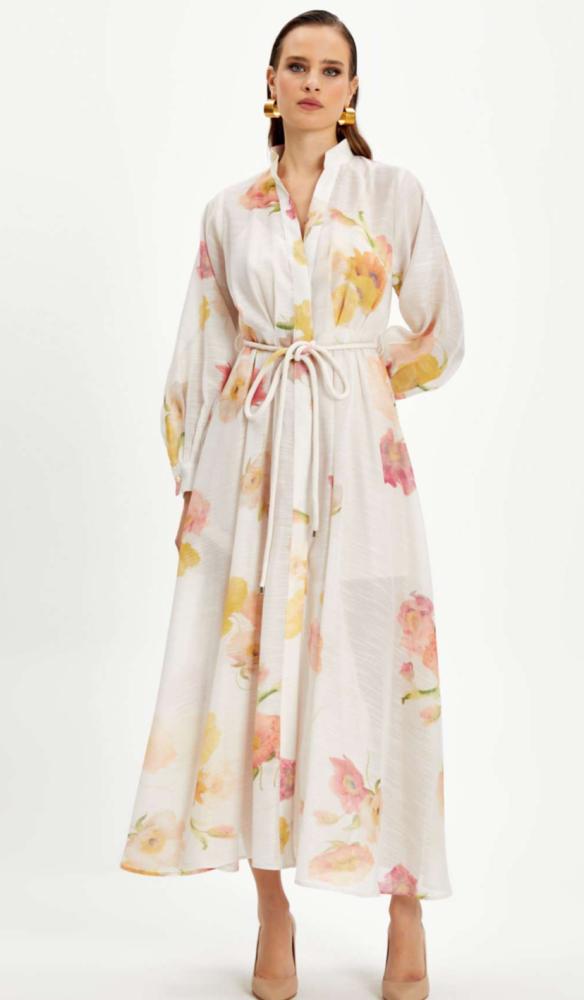 فستان لينن داخلي وبشت لينن بتطريز ملون