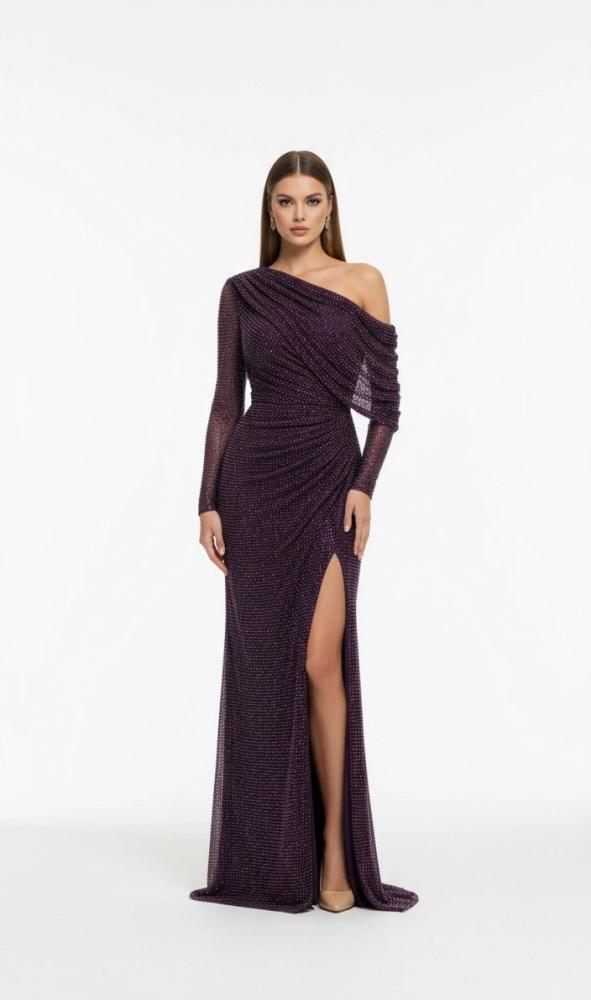 طارق ايديز فستان تفته بقصة انسيابية ون شولدر