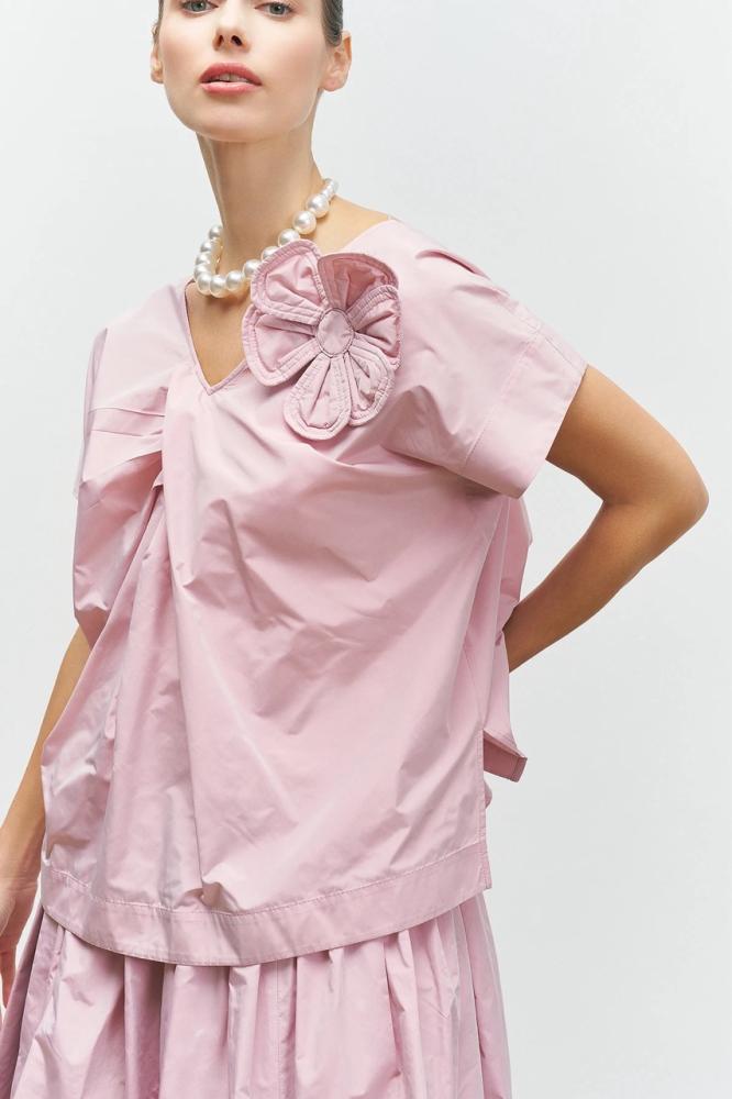 طقم اورقنزا كتان بطبعة ربيعية و شك أمامي "وردي"